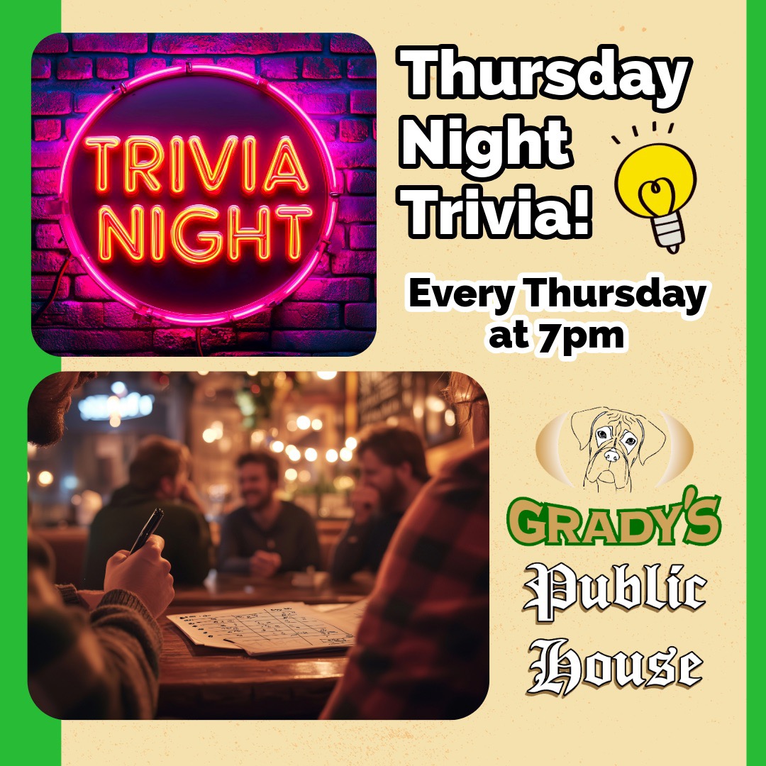 We’re your Vancouver neighborhood spot for comfort food, great drinks, and all the sports you can handle. From weekday Happy Hour to weekend Brunch and Thursday Trivia, there’s always something happening at Grady’s.